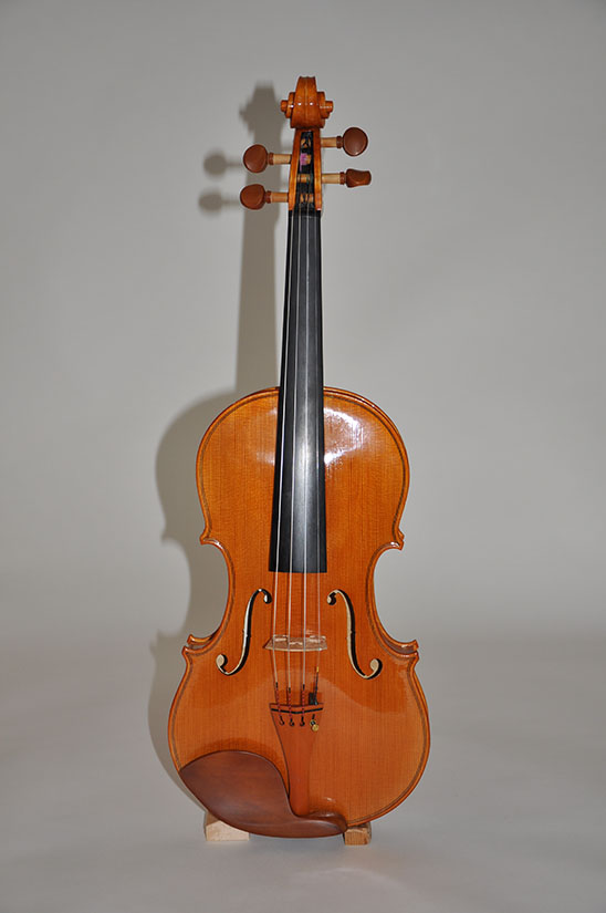 Nach dem Studium des Modells folgen viele einzelne Arbeitsschritte, die in Summe ein Unikat ergeben: Wahl des Holzes, Bau des Formbretts und des Zargenkranzes, Ausarbeitung von Decke und Boden, Zusammenbau des Korpus, Schnitzen der Schnecke, Einsetzen des Halses, Grundierung, mehrmalige Lackierungen, Montage des Griffbretts, Einsetzen des Stimmstocks, Aufspannen der Saiten, Klangeinstellung. Und noch viele wesentliche Handgriffe dazwischen!