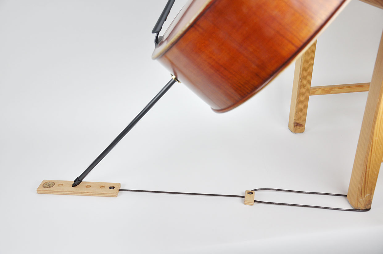 Der Celloständer mit einer Standbreite von 33,5 cm hat ein